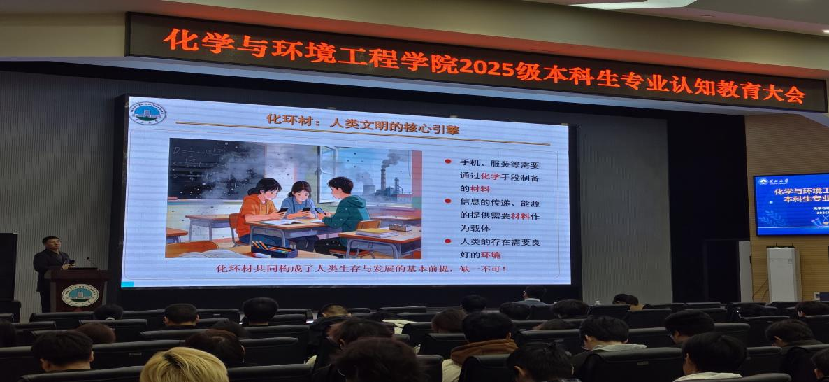 本次大会特别邀请到a片漫画博士生导师米远祝教授担任主讲。米教授以其深厚的学术积淀和丰富的教学经验,围绕“材铸家国底气,化育幸福人生”的主题,为2025级本科生带来了一场精彩的专业认知课。他从“化环材”学科在人类文明进程中的核心引擎作用讲起,生动阐述了化学、材料、环境学科如何构成现代文明的基石,并通过衣食住行、医疗健康、国防科技等多个领域的生动案例,深刻揭示了该学科对国家发展和民族复兴的“硬核底气”。