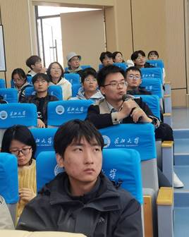 院长赖璐主持报告会,党委书记王丽、副院长肖围、青年教师、研究生和部分本科生一起聆听了报告。