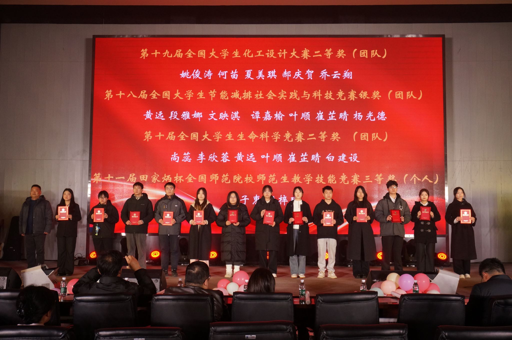 由学生会带来的朗诵《觉醒》铿锵有力、饱含深情,字里行间洋溢着青年学子的责任与担当;程紫菱、艾秦薇等同学演绎的舞蹈《寄明月》舞姿曼妙,古典韵味悠长,将观众带入诗意画卷。王珅珅、闵丽君合唱的《美丽的神话》深情款款,婉转的歌声诉说着动人故事。青支队、化昱班第二期全体成员带来的《夜空中最亮的星》,全体成员携手合唱,传递出同心筑梦、共赴新程的坚定信念,现场观众纷纷挥动荧光棒,晚会在温馨而热烈的氛围中落下帷幕。