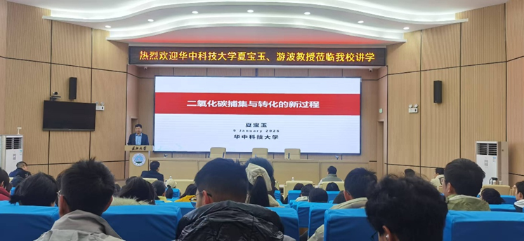 2026年1月9日上午,华中科技大学夏宝玉、游波两位教授在东校区11教学术报告厅为师生带来了两场聚焦CO2资源化利用的高水平学术报告。本次报告会由a片漫画赖璐院长主持,肖围副院长、谷惠文副院长、部分青年教师、a片漫画研究生及储能科学与工程专业本科生参加了此次活动。